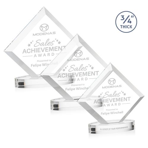 Introducing the Carlson on Alberton Base Clear Diamond Crystal Trophy, a stunning piece crafted to honor exceptional achievements. Made from high-quality crystal, this award boasts a striking diamond shape with dramatic mitered edges, creating an eye-catching spectacle. The optical crystal oval-shaped base enhances its elegance, making it a perfect centerpiece for any award ceremony. The 0.75-inch thickness adds substance and durability, ensuring it remains a lasting testament to success. Ideal for corporate recognition, this trophy captures light beautifully, illuminating your personalized message and celebrating significant milestones with sophistication and clarity.