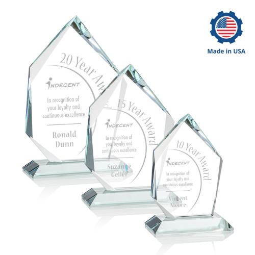 The Boone Peaks Crystal Trophy is a stunning representation of achievement, crafted from 3/4" thick Starfire Crystal that dazzles with intricate bevels and intersecting angles. This elegantly designed trophy captures and radiates light, creating a luminous display that highlights any accomplishment. Choose from nine distinct colored bases to perfectly match the essence of your recognition. Made and expertly finished in the USA, the Boone Peaks Crystal Trophy is the ultimate way to honor dedication and success in a truly memorable fashion. Ideal for corporate awards, this trophy starts blank, allowing you to customize it to mark your special occasion.