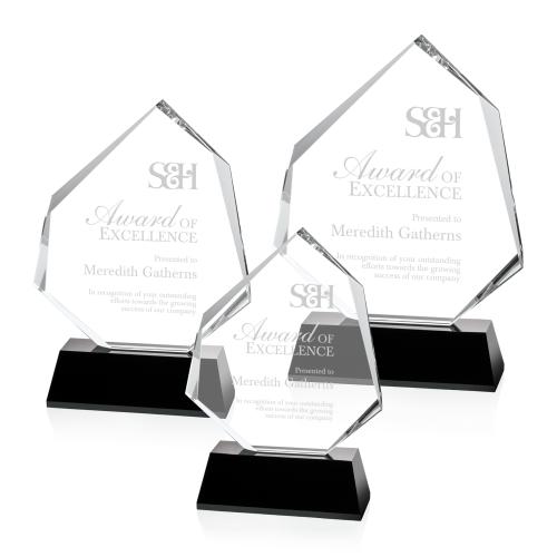 Celebrate achievements with the Crain Black Peaks Crystal Trophy, a symbol of success and recognition. Crafted from premium crystal, this award features a striking combination of a solid beveled black base supporting clear optical crystal with elegant peak-inspired designs. The clarity of the material emphasizes purity and excellence, making it a perfect medium to honor accomplishment. Its versatile aesthetic allows for a high degree of customization, providing ample space for personalized engravings to commemorate any special occasion. Whether recognizing a top performer, a milestone achievement, or a significant contribution, this crystal trophy is sure to convey the importance of the moment with its formal elegance and contemporary style.