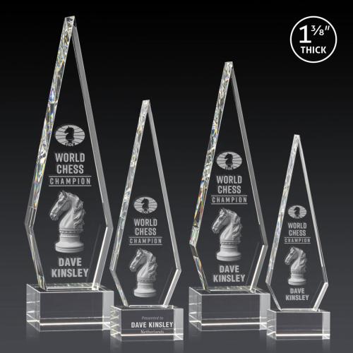 Introducing the Cullen 3D on Plated Base Clear Polygon Crystal Trophy â a masterpiece of craftsmanship and elegance. This award features a striking polygon shape crafted from optical crystal, standing proudly at 1 3/8 inches thick. Its elongated, diamond-like design captures and reflects light to create a dazzling display of brilliance. Perfect for recognizing outstanding achievements, the trophy offers the option for personalized 3D engraving, making it a timeless keepsake. With various base options available and a choice for a second etching position, this award is as versatile as it is stunning, making it an ideal choice for celebrating excellence in any field.