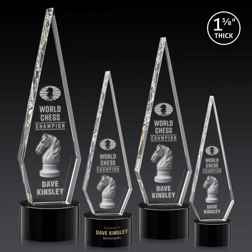 The Cullen 3D on Round Base Black Polygon Crystal Trophy is a stunning embodiment of achievement and elegance. Crafted from optical crystal, it features a tall, diamond-shaped design that is 1 3/8 inches thick, exuding sophistication and brilliance from every angle. Its precision-cut edges and flawless clarity capture and reflect light beautifully, making it a striking centerpiece for any award ceremony or display. This extraordinary award comes with customizable 3D engraving, allowing you to personalize it to commemorate exceptional accomplishments. Available with various bases and optional second-position etching, this trophy is a perfect choice for honoring outstanding achievements with style and class.