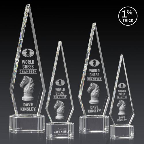 Introducing the Cullen 3D Half Round Base Clear Polygon Crystal Trophy, a masterpiece of elegance and sophistication. Crafted from premium optical crystal, this award features a striking elongated diamond shape that stands 1 3/8 inches thick. Its flawless clarity and precision-cut edges beautifully reflect light, underscoring the craftsmanship and significance of the accolade. Ideal for recognizing excellence, this trophy can be customized with 3D engraving to bring your achievements to life. It sits gracefully on a stylish base, with optional second-position etching available for a personalized touch. Whether for corporate achievements or personal milestones, this trophy is a timeless tribute to success.