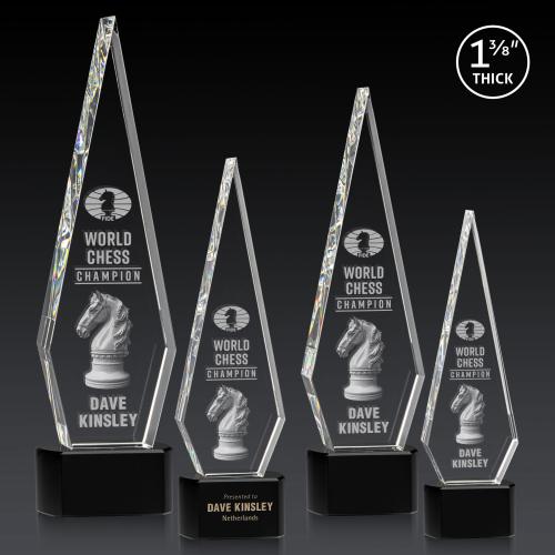 Introducing the Cullen 3D on Half Round Base Black Polygon Crystal Trophy, a masterpiece of modern elegance and a testament to exceptional achievement. Crafted from premium optical crystal, this stunning award features a tall, diamond-shaped design with a 1 3/8-inch thickness, capturing and reflecting light with pristine clarity and brilliance. Its sleek, polygonal silhouette rests on a sophisticated black base, making it a striking focal point for any award ceremony or display. Personalize it with 3D subsurface engraving to commemorate outstanding accomplishments. With optional second position etching and a variety of base options, this award offers a customizable solution to celebrate and honor excellence with style.