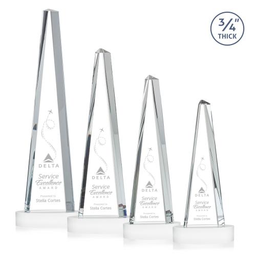 Introducing the Womack Tower on Alberton Base Fagan Towers Crystal Trophy, an exquisite symbol of achievement and excellence. Crafted from premium Starfire Crystal, this award stands tall with its elegant 3/4" thick tower design, perfectly complemented by a stately Starfire Crystal Alberton base. Its timeless structure, reminiscent of a pyramid, makes it a striking addition to any office or home display. Ideal for recognizing monumental accomplishments, this trophy offers optional colorfill and second position engraving, allowing for personalized touches that capture each recipient's unique achievements. Celebrate success with this breathtaking piece that promises to inspire and honor.