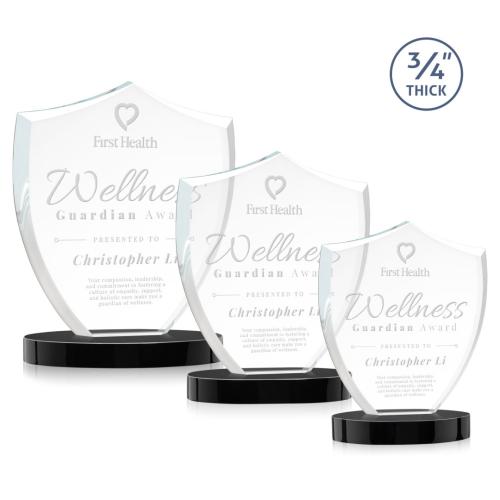 The Escamilla Shield on Alberton Base is a striking and meaningful corporate award, perfect for honoring the exceptional dedication of first responders and law enforcement. Crafted from premium Starfire Crystal, this award features elegantly beveled edges that catch the light beautifully. The shield shape, symbolizing protection and authority, is mounted on a sophisticated oval optical crystal base in a sleek black finish. Measuring 3/4" thick, this award offers a unique blend of durability and elegance, making it an ideal choice for recognizing outstanding excellence. Personalize it to commemorate achievements with a distinguished and personal touch.