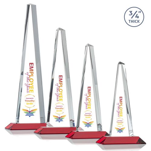 Presenting the Womack Tower Full Color Red Towers Crystal Trophy, an exquisite piece designed to honor exceptional achievements with elegance and grandeur. This striking trophy features a towering 3/4" thick Starfire Crystal structure gracefully set on a complementary Starfire Crystal base, making it a bold statement of recognition. Its pyramid-inspired design is enhanced with vivid full-color personalization options that bring a unique and vibrant touch to each award. Ideal for appreciating remarkable accomplishments, this trophy embodies prestige and admiration, offering a timeless keepsake for any award ceremony. Let the Womack Tower Crystal Trophy stand as a symbol of excellence and unforgettable success.