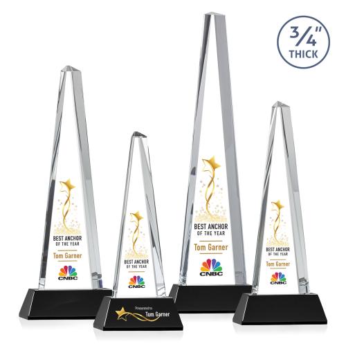 Introducing the Womack Tower Full Color on Helton Base, a stunning Crystal Trophy designed to make a monumental statement of recognition. Crafted from 3/4" thick Starfire Crystal, this elegant award features a statuesque tower set atop a sleek Starfire Crystal Newhaven base. Perfect for commemorating outstanding achievements, the VividPrint™ technology ensures vibrant, full-color personalization that stands out. Its tower and pyramid shape exudes sophistication, making it an ideal choice for prestigious occasions. Optional colorfill and a second position to personalize allow you to tailor it to any event or recipient, ensuring each award is as unique as the accomplishment it celebrates.