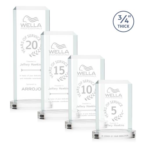 Celebrate excellence with the Carey on Alberton Base Clear Rectangle Crystal Trophy. This elegant award features a substantial 3/4" thick Starfire Crystal tower with beautifully mitered edges, creating a sparkling frame that enhances your personalized message of recognition. Choose from nine vivid colored Alberton bases to perfectly complement your design, making the Dalton award a striking centerpiece in any room. Crafted with precision in the USA, this crystal trophy not only symbolizes achievement but also radiates light and admiration, making it an ideal choice for honoring outstanding accomplishments.