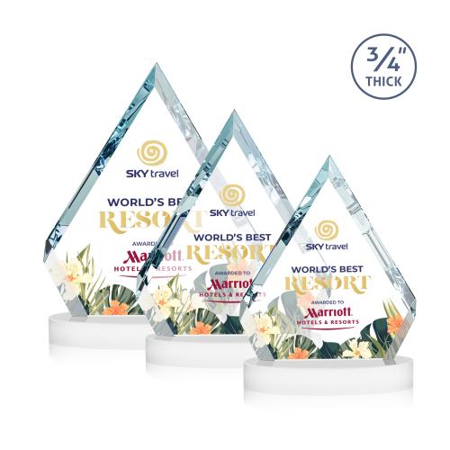 The Apex Full Color on Alberton Base Fagan Diamond Crystal Trophy is a standout piece for celebrating exceptional achievements. Crafted from 0.75" thick Starfire Crystal, its diamond-shaped design features interchanging bevels that brilliantly capture and reflect light, enhancing the presence of any message or personalization. Perched elegantly on an Alberton Crystal Base, this trophy symbolizes the pinnacle of success and makes any recognition moment memorable. With the added option of full-color VividPrint, your custom text or logo shines with vibrant clarity, ensuring the recipient feels truly honored. Perfect for those seeking a high-quality, visually striking award.