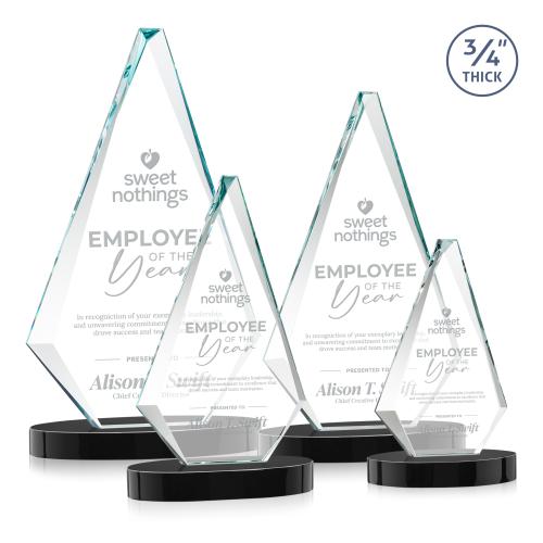 Celebrate exceptional achievements with the Crowell on Alberton Base Black Crystal Trophy, a stunning piece designed for corporate recognition. Crafted from 0.75-inch thick Starfire Crystal, this trophy features a striking diamond shape with sparkling bevels that catch the light beautifully. Mounted on a sleek Starfire Alberton base, its classic design exudes elegance and sophistication. Perfect for honoring top performers, this crystal trophy stands as a lasting symbol of excellence and dedication. Personalization options allow you to tailor each award to celebrate individual accomplishments with a unique touch.
