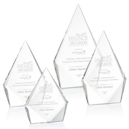 Introducing the Shelton Clear Crystal Trophy, a masterpiece designed to celebrate excellence and ambition. This award features a striking diamond shape and an elongated peak, making it a powerful symbol of achievement. Crafted from premium optical crystal, its freestanding design with polished bottom bevels adds a touch of elegance and sophistication to any recognition event. Perfect for highlighting exceptional accomplishments, the Shelton Clear Crystal Trophy can be personalized to make your recipient feel truly special. Whether for corporate milestones or personal triumphs, this award stands as a timeless testament to success.
