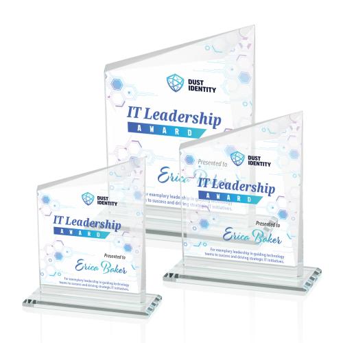 The Saucedo Full Color Clear Peaks Crystal Trophy is a stunning tribute to excellence, perfect for honoring exceptional achievements. Crafted from premium Starfire glass, its elegant design features a striking bevel that beautifully frames the peaked edges, enhancing its clarity and sophistication. The gleaming optical crystal base adds an extra layer of brilliance and stability. This trophy is brought to life with VividPrint™ technology, allowing vibrant full-color customization that amplifies your message of recognition. Ideal for prestigious awards and memorable displays, it symbolizes success with an exquisite touch of elegance.