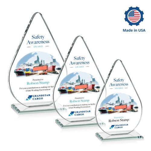 Celebrate excellence with the Moyer Full Color Tear Drop Crystal Trophy, a stunning symbol of achievement and elegance. Crafted in the USA, this award features a beautifully designed Starfire droplet shape that captures attention with its sophisticated style. Resting gracefully on a round Starfire base, it offers a perfect canvas for full-color customization, making each piece unique and personal. Ideal for honoring outstanding accomplishments, this crystal trophy embodies both prestige and beauty, ensuring it stands as a lasting tribute to success and dedication. Perfect for any recognition event, the Moyer Trophy is where craftsmanship meets elegance.