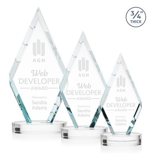 The Richmond on Alberton Base Clear Crystal Trophy is a sophisticated and striking award designed to honor outstanding achievements with timeless elegance. Crafted from high-quality Starfire Crystal, this trophy features beautifully interchanging beveled edges that catch and reflect light, creating a dazzling display. It stands gracefully on an oval crystal base, available in your choice of distinct colors, providing a personalized touch to your award presentation. This trophy offers optional etching on the base, allowing you to add a meaningful message or recognition statement. Perfect for corporate awards or special acknowledgments, the Richmond Trophy is a symbol of excellence and appreciation.