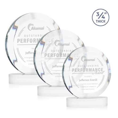 Celebrate achievements with timeless elegance using the Delarosa on Alberton Base Fagan Circle Crystal Trophy. Crafted from exquisite crystal, this award features a 3/4" thick Starfire circle that radiates sophistication, accentuated by its soft beveled edge. The circle rests gracefully atop an oval crystal base, available in a variety of distinct colors to suit your style. Perfect for highlighting significant milestones, this trophy offers a beautiful canvas for customization, ensuring your message of excellence is delivered with clarity and style. Ideal for recognizing outstanding performance in the corporate world, it's a gift that speaks volumes.