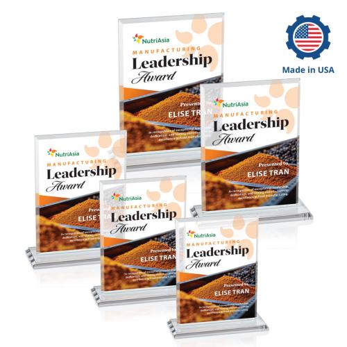 Celebrate remarkable achievements with the Lorenzo Full Color Rectangle Crystal Trophy, a distinguished award that exudes elegance and prestige. Crafted from high-quality crystal in the USA, this trophy features a sophisticated rectangular shape, enhanced by its beveled edges for a touch of sophistication. Resting on a sleek ebony base, it stands as a timeless piece suitable for any recognition event. Perfect for personalizing with your choice of design, the trophy's vivid colors bring each unique achievement to life. Ideal for leadership awards, corporate milestones, or any event where excellence deserves to be acknowledged with grace and style.