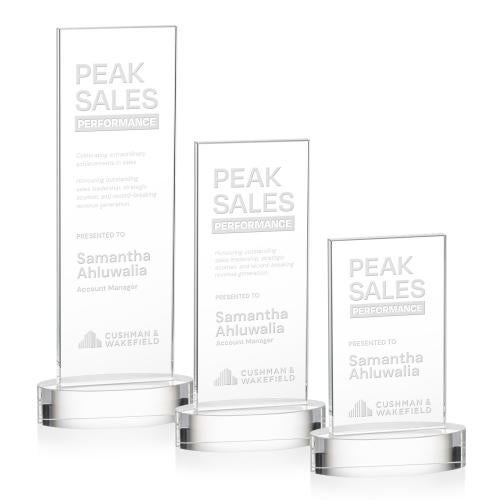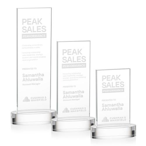 Introducing the Riggs on Alberton Base Clear Rectangle Crystal Trophy-a stunning tribute to excellence and achievement. Crafted from premium Starfire Crystal, this award features a sleek rectangle design that stands proudly on an elegant optical crystal oval base. Perfect for corporate recognition, its expansive engraving area provides ample space for custom messages, logos, or names that celebrate success and dedication. Whether it's for honoring top performers or commemorating significant milestones, this trophy's refined and modern style makes it an ideal choice for any prestigious occasion. Present the Riggs Trophy to showcase appreciation in the most distinguished way.