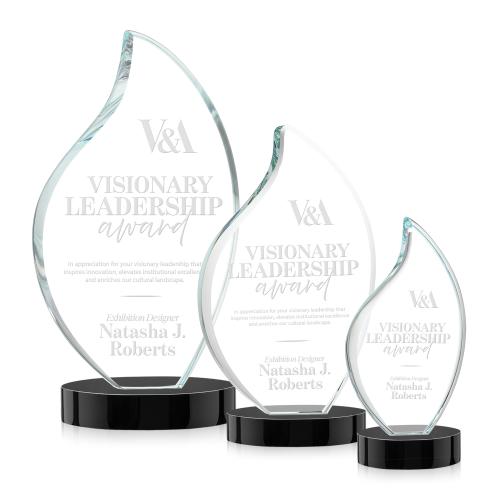 Introducing the Teague on Alberton Base Black Flame Crystal Trophy, a distinguished symbol of achievement and excellence. This stunning award showcases a 3/4" thick Starfire Crystal flame, elegantly crafted with rounded edges that gleam with sophistication. Resting on a sleek Alberton oval base, this trophy is ideal for commemorating outstanding accomplishments and momentous occasions. Its flame design embodies passion and success, making it a perfect choice for recognizing visionary leadership and dedication. Personalize this timeless piece to make it truly unique for your honoree. Celebrate greatness with a touch of elegance and grace that leaves a lasting impression.