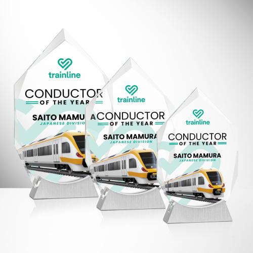 Celebrate achievement with the exquisite Westmore Full Color Peaks Crystal Trophy. Crafted from premium Starfire crystal, this award features a bold geometric peak design and refined beveled edges that catch the light beautifully. Resting on a sleek brushed aluminum base, it adds a modern touch to its sophisticated style. Perfect for honoring milestones, this trophy offers customizable engraving and vibrant full-color VividPrint to highlight your accolades with flair. Ideal for recognizing excellence, it's a standout piece that leaves a lasting impression.