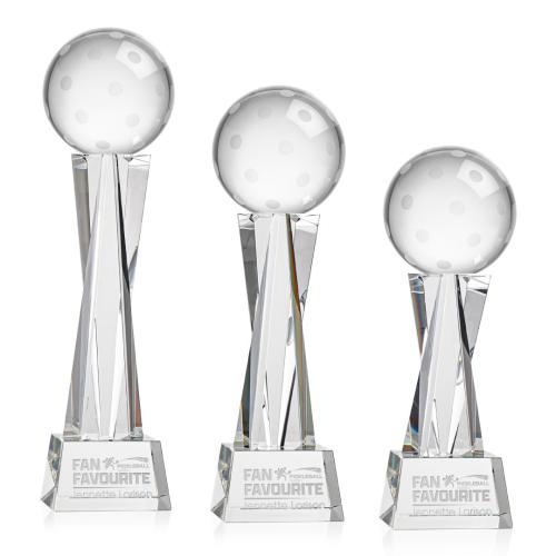 Celebrate the spirit and skill of pickleball with our stunning Pickleball on Saldana Base Clear Globe Crystal Trophy. This exquisite award features a meticulously crafted optical crystal globe, capturing and scattering light in a mesmerizing way, reminiscent of a pickleball in motion. The globe is elegantly perched atop a solid optical crystal base, providing ample space for personalized engraving with a logo or name, making it perfect for honoring achievements at tournaments, competitions, or special events. This trophy is not only a symbol of excellence but also a beautiful keepsake that captures the dynamic energy of the sport.