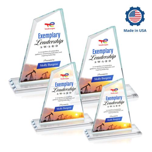 Celebrate exceptional achievements with the Summit Full Color Peaks Crystal Trophy, where contemporary elegance meets timeless design. Made from premium Starfire and optical crystal, this stunning award showcases a chic peaked shape that captures the essence of success. With its VividPrint capabilities, you can personalize each trophy to honor individual accomplishments with vibrant, detailed imagery and text. Crafted and decorated in the USA, this trophy not only represents outstanding recognition but also supports local craftsmanship. Perfect for commemorating corporate excellence, this award stands as a striking symbol of honor on any desk or mantle.