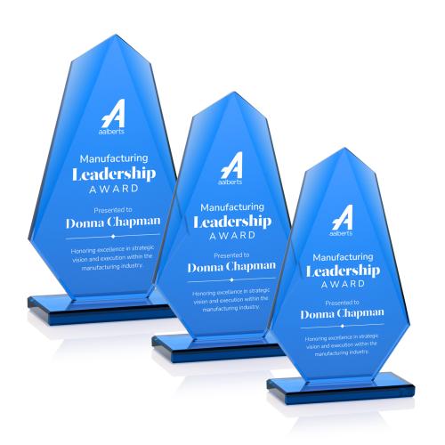 The Winstead Peaks Crystal Trophy is a true embodiment of elegance and sophistication, perfect for honoring excellence in any corporate setting. This stunning award features a captivating beveled edge design that gracefully tapers from the top to its solid rectangular base, all crafted in a rich blue hue for a bold and refined look. Made entirely of crystal, the trophy showcases a peak shape that symbolizes achievement and strength, making it an ideal choice for celebrating outstanding accomplishments. Its striking presentation ensures it will be a cherished keepsake for any recipient. Personalization options are available to make each award uniquely special.