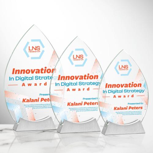 Introducing the Newham Full Color Tear Drop Crystal Trophy, an exquisite piece designed to honor excellence and innovation with undeniable elegance. Crafted from premium starfire crystal, this award features a sophisticated teardrop shape that captures the eye with its contemporary flair. Supported by a robust brushed aluminum base, it offers a refined blend of modern style and timeless prestige, making it the perfect choice for any prestigious recognition event. Personalize your award to make it truly unique for the deserving recipient. With the Newham Trophy, celebrate achievements in the most distinguished and polished manner.