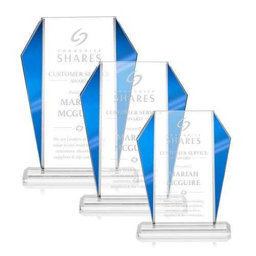 Elevate your recognition ceremony with the Swain Blue Peaks Crystal Trophy, a stunning manifestation of appreciation and high achievement. This exquisitely designed award, crafted from premium crystal, showcases striking blue metallic accents that beautifully frame the contours of its dynamic peak shape. Each trophy is complemented by reflective mirror highlights adding depth and sophistication. Without any initial decorations, the sleek crystal surface awaits your personalized message, ensuring that your words of praise resonate profoundly with every recipient. Whether you're honoring top performers or commemorating a landmark occasion, the refined elegance of this crystal trophy promises to leave a lasting impression.