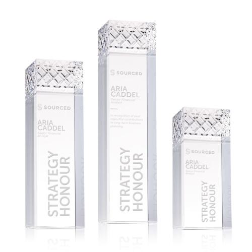 Introducing the Velson Towers Crystal Trophy, a remarkable symbol of achievement and elegance. Crafted from high-quality optical crystal, this trophy features a tall, freestanding rectangular column that embodies strength and prestige. Its elegant design is enhanced by a beautifully cut diamond-patterned top, capturing and reflecting light to create a stunning visual effect. Ideal for corporate awards and recognition, the Velson Towers Crystal Trophy offers a sophisticated and timeless way to honor exceptional accomplishments. Personalizable to suit any occasion, this piece starts blank, allowing for customization to make each award truly unique.