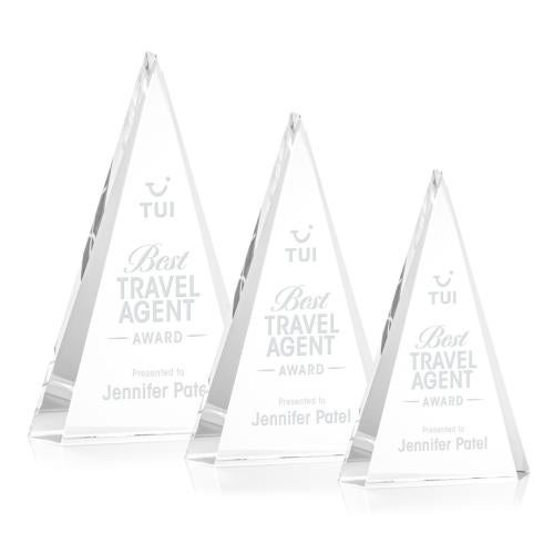 The Helston Clear Pyramid Crystal Trophy is a striking choice for recognizing outstanding achievements, designed to leave a lasting impression. Expertly crafted from premium optical crystal, this award features a dynamic triangular form that exudes elegance and sophistication. Its pyramid shape symbolizes strength and stability, making it an ideal choice for corporate recognition. Perfect for personalization, it starts as a blank canvas, allowing you to add a unique, customized touch that fosters a sense of pride and accomplishment. Whether it's for celebrating top sales, exceptional service, or leadership excellence, the Helston Trophy stands out as a timeless tribute to success.