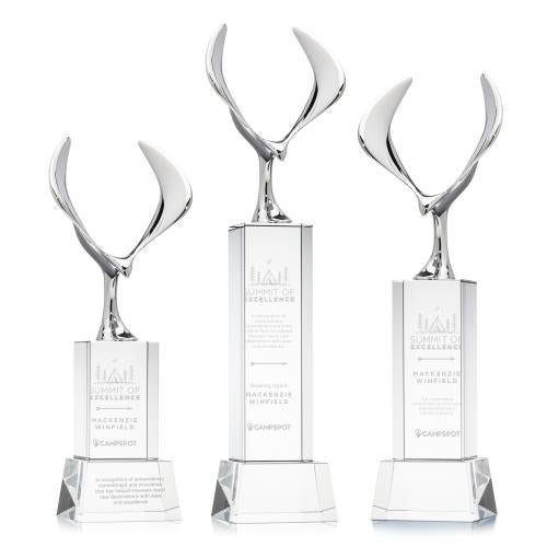 The Maverick Eagle on Belcroft Base Crystal Trophy is a stunning tribute to achievement and freedom, featuring a soaring chrome eagle that symbolizes vision and success. Mounted on an elegant Optic Crystal base, available in various shapes to perfectly match your recognition style, this award offers a striking display of strength and sophistication. Crafted from high-quality crystal and metal, it serves as an impressive centerpiece for any awards ceremony. Personalize it with optional etching to commemorate the recipient's accomplishments, making it a memorable testament to excellence.