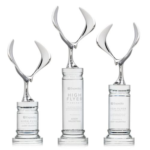 The Maverick Eagle on Pedestal Base Crystal Trophy stands as a magnificent tribute to vision, freedom, and achievement. Featuring a dynamic chrome eagle in flight, this award captures the essence of excellence with its sweeping wingspan. Crafted from high-quality crystal and metal, it is available with your choice of elegant Optic Crystal bases, each designed to complement the striking eagle motif. Ideal for honoring outstanding achievements, this trophy combines strength and sophistication, providing a powerful statement piece that celebrates success in style. Personalize it to make a lasting impression for any prestigious occasion.