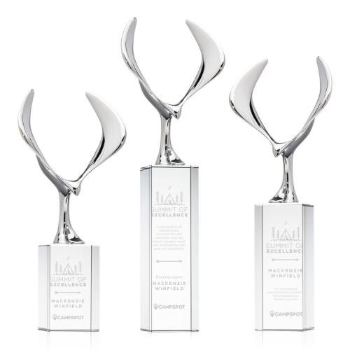 Celebrate achievement with the Maverick Eagle on Yoder Base Crystal Trophy, a stunning symbol of vision and freedom. This award features a majestic chrome eagle, poised with a dramatic wingspan, perfectly embodied in its sleek, modern design. Mounted on a choice of elegant Optic Crystal bases, it offers versatility in style to suit any recognition event. Crafted from premium crystal and metal, the trophy exudes brilliance and strength, making it an exceptional honor for any recipient. Ideal for those who achieve greatness, this award promises to leave a lasting impression of excellence and sophistication. Perfect for customization, each piece starts blank, ready to be personalized with your unique message.