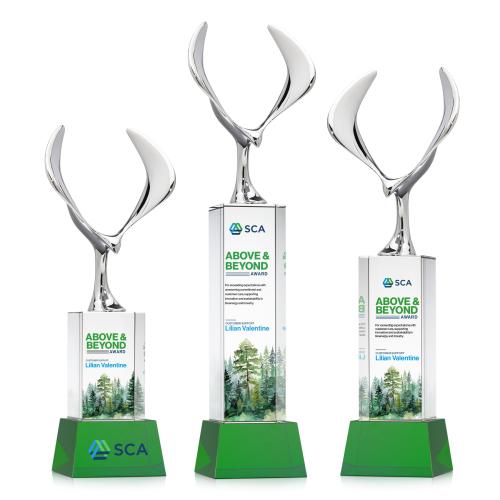 Introducing the Maverick Eagle Full Color on Belcroft Base Green Animals Crystal Trophy, a majestic award that embodies vision, freedom, and achievement. Featuring a stunning chrome eagle in mid-flight, this trophy captures the spirit of excellence with its dynamic wingspan. The elegant Optical Crystal base, available in multiple shapes and finishes, provides a sophisticated foundation that complements any recognition style. Enhance your accolade with full-color VividPrint, bringing depth and vibrancy to your personalized design. Ideal for honoring outstanding achievements, this crystal and metal masterpiece stands as a striking testament to success and ambition.
