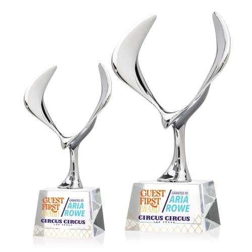 The Maverick Eagle Full Color Crystal Trophy is a stunning tribute to achievement, blending artistic flair with meaningful symbolism. This exquisite award features a chrome eagle in flight, eloquently representing vision, freedom, and success, perched atop a clear, elegant optical crystal base. Each piece begins as a blank canvas, ready to be transformed with your personalized message or design through our vibrant full-color VividPrint technology, ensuring every detail stands out with clarity and brilliance. Perfect for honoring exceptional accomplishments, this trophy is not just a reward but a statement piece that embodies both strength and sophistication.