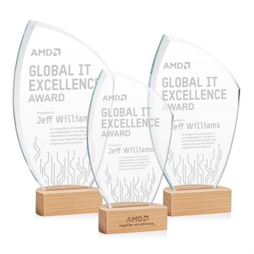 The Clarence Peaks Crystal Trophy exudes modern elegance and natural warmth, making it a standout choice for celebrating exceptional achievements. Crafted from premium Starfire crystal, its sleek, upward-sweeping design symbolizes growth and forward momentum. The softly curved edge adds a touch of sophistication, while the natural beechwood base enhances its organic allure. With a generous imprint area, it's perfect for vibrant color decoration or deep etching, offering a personalized tribute to innovation and success. Whether used in corporate settings or special ceremonies, this trophy captures the essence of excellence and recognition effortlessly.