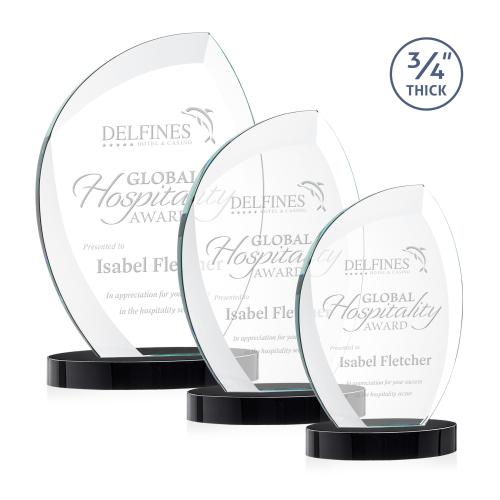 Introducing the Oakes on Alberton Base Black Flame Crystal Trophy, a stunning tribute to excellence and achievement. Crafted from robust 3/4" Starfire Crystal, this award features deep, sweeping bevels that gracefully curve around your personalized message, capturing and reflecting light in a dazzling display. The flame design, paired with a sturdy black base, symbolizes passion and innovation, making it an ideal recognition piece for any noteworthy accomplishment. Stand out with a modern monument that not only honors success but also adds elegance to any setting. Perfect for corporate awards, this trophy starts blank, allowing for custom engraving that celebrates your unique achievements.