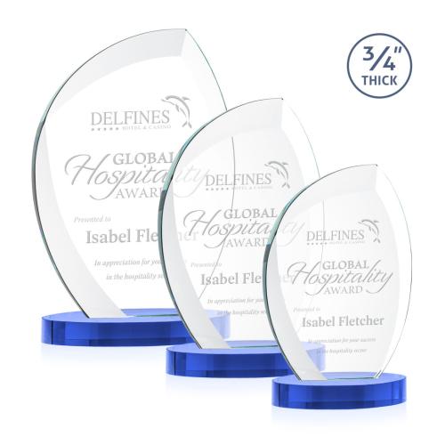 Introducing the Oakes on Alberton Base Sky Blue Flame Crystal Trophy, a distinguished choice for honoring exceptional achievements. Crafted from premium 3/4" thick Starfire Crystal, this elegant award features deep, sweeping bevels that beautifully reflect light around your personalized message of recognition. The sleek flame design is a modern tribute to success, set atop a striking sky-blue base that adds a touch of contemporary sophistication. Ideal for corporate accolades or any special occasion, this trophy is a memorable way to celebrate excellence with style and grace. Personalization options allow you to start with a blank canvas to create a truly unique recognition piece.