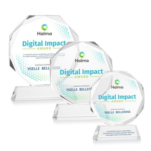 Celebrate exceptional achievements with the Acadian Full Color on Helton Base Clear Polygon Crystal Trophy-a masterpiece of recognition crafted from premium optical crystal. Its multifaceted design captures and reflects light, creating an eye-catching display of elegance and prestige. The Helton base, available in nine vibrant colors, adds a personalized touch that enhances its striking appearance. Perfect for honoring leadership or excellence, this award offers timeless sophistication that brings your custom artwork to life with stunning full-color VividPrint. Ideal for awarding distinction in any field, the Acadian Trophy transforms every accolade into a memorable presentation.