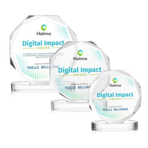 Celebrate excellence with the Acadian Full Color on Alberton Base Clear Polygon Crystal Trophy, a dazzling tribute crafted from premium optical crystal. Its striking multi-faceted design catches and reflects light beautifully, making it a standout piece in any recognition or award ceremony. The Alberton base, available in nine vibrant colors, adds a personalized touch to this elegant trophy, making it perfect for honoring achievements and leadership. With the ability to bring your artwork to life through full-color VividPrint, this trophy combines timeless elegance with a modern flair, ensuring your recognition is both impressive and memorable.