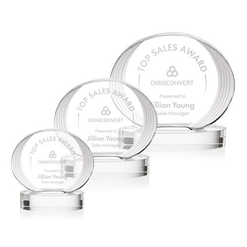 Discover the elegance of the Schaffer on Base Clear Circle Crystal Trophy, the perfect embodiment of achievement and recognition. Crafted from premium crystal, this striking trophy features a sleek, concave oval design with a unique striped, ridged edge, creating a sophisticated fanfare around your custom imprint. Mounted on a solid, clear base, its layered detailing adds depth and dimension, beautifully showcasing your personalized message or logo. Whether for corporate recognition or special events, this award combines contemporary style with timeless elegance, making it an ideal choice to honor exceptional accomplishments.