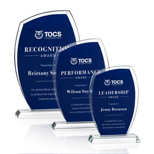 Celebrate excellence and inspire continued achievement with the Swartz Blue Unique Crystal Trophy. This elegantly designed award strikes the perfect balance between modern sophistication and timeless appreciation. Crafted from high-quality crystal with a distinctive curved beveled top, this trophy features a rich sapphire accent that, when laser engraved, reveals a contrasting clear Starfire Crystal beneath. Its one-of-a-kind shape and design are ideal for personalization, making it an ideal choice to honor standout individuals in any organization. The trophy's dazzling presence on any mantel or in any display case ensures that the recipient's accomplishments will be recognized and remembered for years to come.