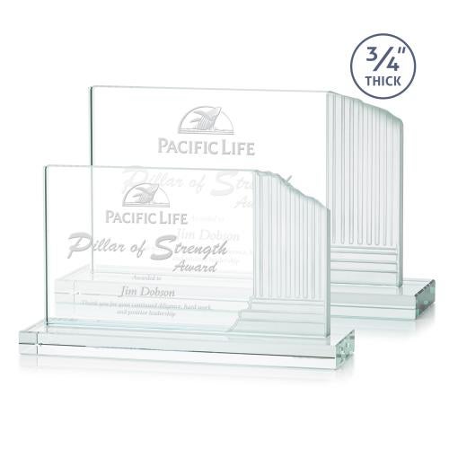 Celebrate the pinnacle of success with the Marsh Starfire Rectangle Crystal Trophy, an exquisite award designed to both honor and impress. Evoking the timeless grandeur of the Roman Colosseum through its meticulously sculpted steps and pillars, this crystal masterpiece offers both a stately elegance and a classic appeal. Crafted from the finest crystal and boasting a substantial thickness that ensures durability, each award sits atop a colored base of your choosing, adding a personalized touch to match your corporate colors or event theme. Perfect for engraving, the generous rectangular surface awaits your personalized message of recognition, ensuring each recipient feels genuinely valued. Whether it is to commemorate an outstanding achievement or to recognize unwavering commitment, this trophy is a true testament to excellence and a distinguished symbol of achievement.
