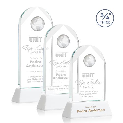 Elevate the recognition of excellence with the Starfire Crystal Blake Globe Award, a striking symbol of achievement and global aspiration. This exquisite award features a beautifully beveled arch design, crowning an optical crystal globe that sparkles with ambition. Resting atop a tall, tapered optical crystal base available in eight distinct colors, it offers a customizable flair to match your company's theme or the recipient's preferences. This ¾ inch thick piece is not only visually stunning but also embodies the pinnacle of craftsmanship in crystal. Optional second position etch and color fill allow for personalized messages, making each award uniquely tailored to celebrate top sales, leadership, or any distinguished accomplishment. Embrace a world of recognition with this luminous portrayal of global success.