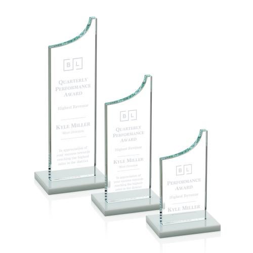 Honor exceptional accomplishments with the Henson Fagan Peaks Crystal Trophy, an exquisite symbol of recognition and success. This elegant trophy boasts a striking Starfire crystal construction, culminating in a distinctive grooved peak that commands attention. Its prismatic surfaces catch and reflect light, celebrating the achievements of the recipient. The trophy sits on a sleek white base, providing a classic contrast and ample space for personalization. Whether for quarterly accolades, corporate milestones, or individual excellence, this trophy is versatile for any celebratory occasion. Offered in various base colors to match your company's theme or recipient's preference, the Henson Fagan Peaks Crystal Trophy epitomizes the pinnacle of achievement. (Please note: Initial product images display example personalizations; all trophies are provided blank for custom inscription.)