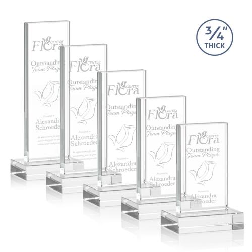 Celebrate success and achievement with the Cartwright Clear Rectangle Crystal Trophy, an embodiment of elegance and clarity. Crafted from premium crystal, this award boasts a timeless rectangle shape that stands 3/4" thick, offering substantial weight and a luxurious feel. The crystal's pristine finish ensures that your personalized message, whether deep etched or full-color VividPrint, is the centerpiece of this exquisite piece. Mounted on a thick matching crystal base for stability and grandeur, this trophy is ideal for recognizing outstanding performance, commemorating milestones, and honoring those who excel in their field. Perfect for corporate awards, academic achievements, or any special occasion, the Cartwright Crystal Trophy is a sophisticated choice that conveys appreciation in a manner that is both prestigious and heartfelt.