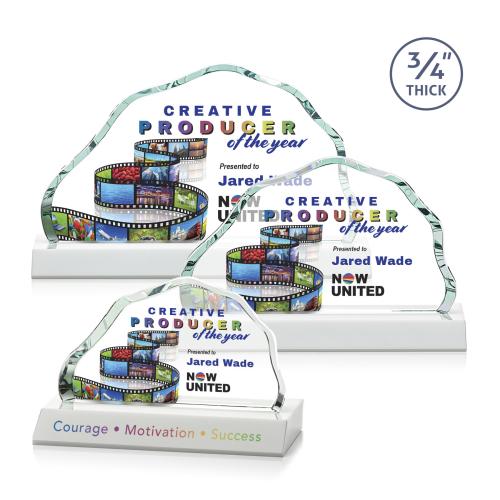 Celebrate monumental achievements with the Pierre Full Color Fagan Crystal Trophy, a symbol of recognition that both inspires and impresses. Crafted with exacting precision from premium crystal, this award features a striking .75ââ¬Â thick beveled iceberg shape that provides an eye-catching frame, perfect for acknowledging someone's towering success. The substantial colored crystal base is designed to enhance the visual impact by refracting light into a vivid show of sparkling reflections, adding depth and brilliance to any personalization. Optional second-position etching allows for customization that is as unique as the accomplishments it commemorates. With its blend of elegance and vibrancy, this trophy is an outstanding choice for recognizing creativity, motivation, and the pinnacle of success.