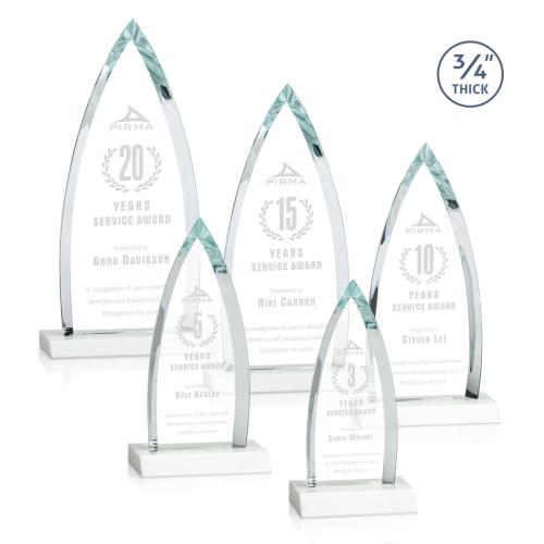 Celebrate milestones and outstanding achievements with the Valdes Fagan Peaks Crystal Trophy, a symbol of excellence and appreciation. This magnificent award features a 3/4" thick, Starfire crystal arrowhead, intricately designed with deep, dramatic bevels that capture and reflect light, giving it an exquisite and dynamic presence. The trophy rests on a sleek ivory crystal base, offering a solid foundation and an added touch of elegance. With the option for a second position etch, this timeless piece provides ample space to personalize your message of recognition and admiration. Ideal for service awards, corporate recognitions, or as a remarkable gift, the Valdes Fagan Peaks Crystal Trophy is sure to leave a lasting impression and celebrate success with the distinction it deserves.