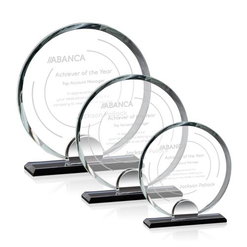 Celebrate success and commemorate achievements with the Devine Circle Crystal Trophy, an epitome of elegance and recognition. This exquisite award features a flawlessly bevelled circle crafted from premium crystal, offering a transparent canvas for your personalized engravings. Mounted on a sophisticated chrome-finished holder and anchored by a sleek black base, it stands as a symbol of excellence and prestige. Whether it's for an 'Employee of the Year', a milestone accomplishment, or any honorary occasion, the Devine Circle Crystal Trophy is designed to impress while conveying appreciation and respect. This timeless piece is sure to take pride of place in any recipient's collection, reflecting their dedication and outstanding performance.
