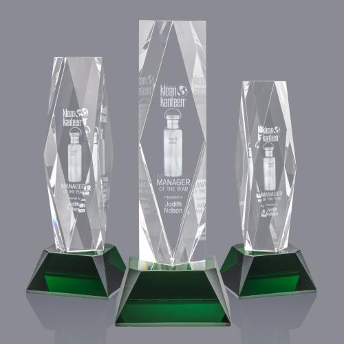 Elevate the prestige of any accolade with our President 3D Green Crystal Trophy, a symbol of excellence designed to honor distinguished achievement. Expertly crafted from the finest crystal, this remarkable award is composed of a central, multi-dimensional diamond pattern set within, producing an eye-catching dance of light and shadow. The design extends into elegant ripples, suggesting movement and progression, befitting the dynamism of its recipients. This exquisite trophy is poised atop an emerald crystal Sheffield base, imparting a stately and luxurious foundation that enhances the overall grandeur of the piece. Ideal for celebrating outstanding leadership, exceptional performance, or significant milestones, the trophy starts as a blank canvas, ready to be personalized with your specific engravings and accolades, turning it into a unique and timeless token of recognition.